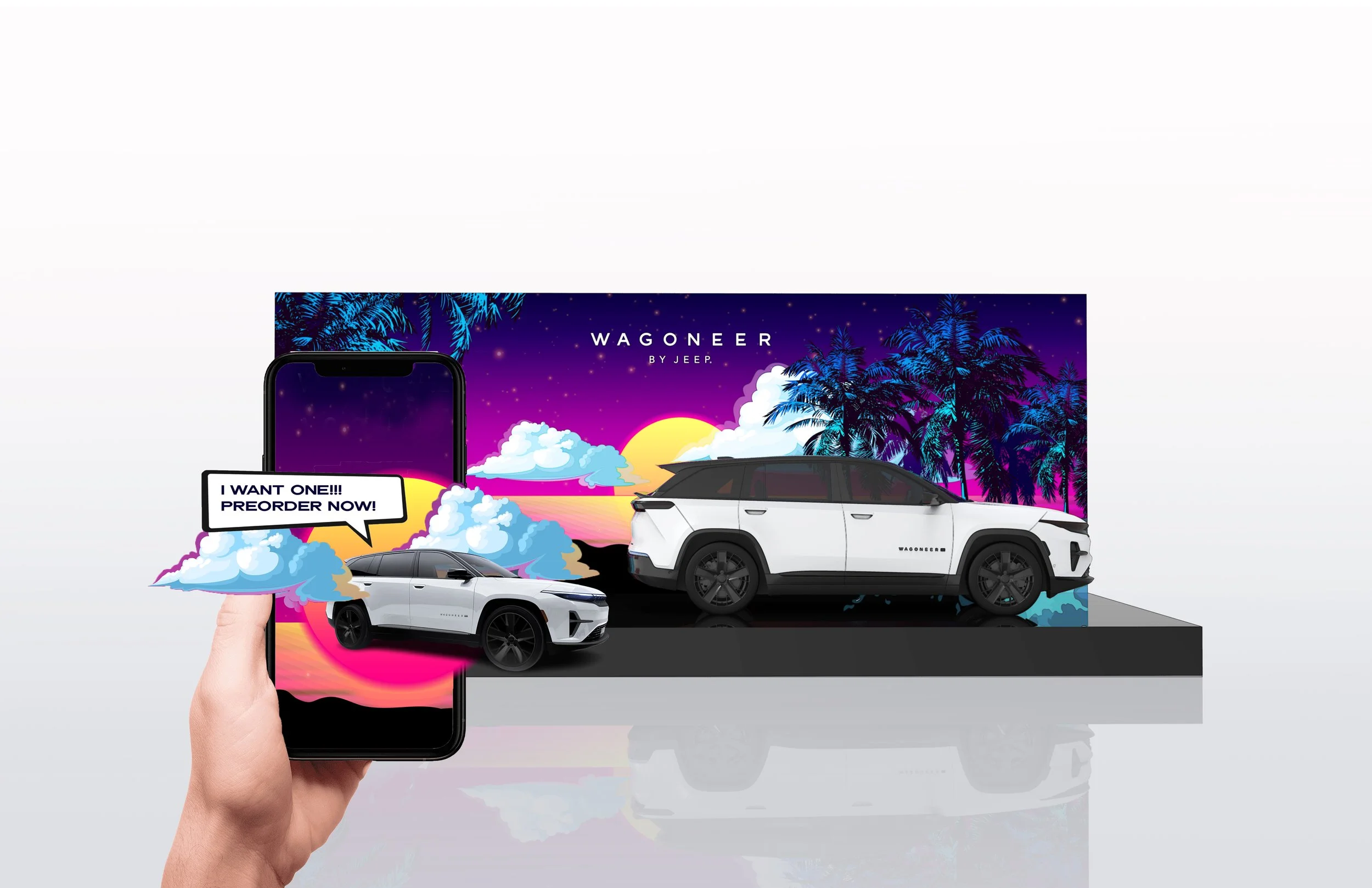 The “Transforming Art” concept for the Wagoneer project in Miami seamlessly blends automotive innovation with the city’s vibrant street art culture. At the heart of this concept is a modern stand, featuring a mural crafted by one of Miami’s renowned graffiti artists. The mural not only serves as a visually striking backdrop but also becomes a dynamic part of the experience. The artwork reflects Miami’s bold and energetic art scene, capturing the essence of the city’s creativity. Its vibrant colors and intricate designs enhance the presence of the Wagoneer S, making it a centerpiece within an artistic context. To elevate the experience further, the concept integrates technology through a QR code placed strategically within the mural. When scanned, the code brings the mural to life, interacting with the Wagoneer S in a unique and captivating way. This augmented reality experience allows users and passersby to see the art transform and engage with the vehicle in a modern, tech-savvy manner, deepening their connection to both the art and the Wagoneer brand. This innovative approach turns a simple display into an immersive experience, transforming static art into a living piece that interacts with the product and the audience. The “Transforming Art” concept not only highlights the Wagoneer S but also celebrates Miami’s rich cultural scene, offering a memorable and multi-sensory experience that resonates with the city’s modern vibe.