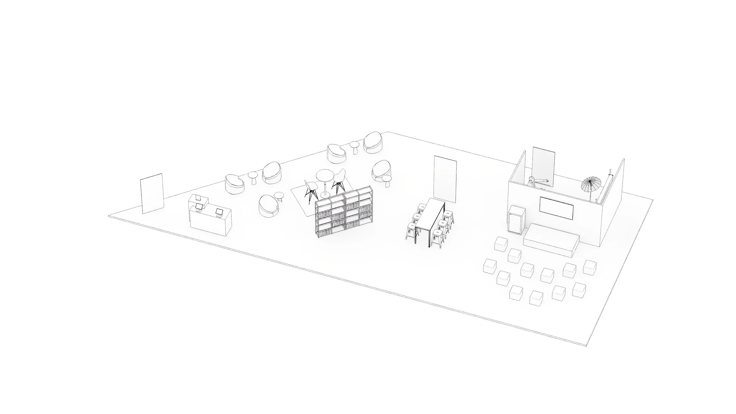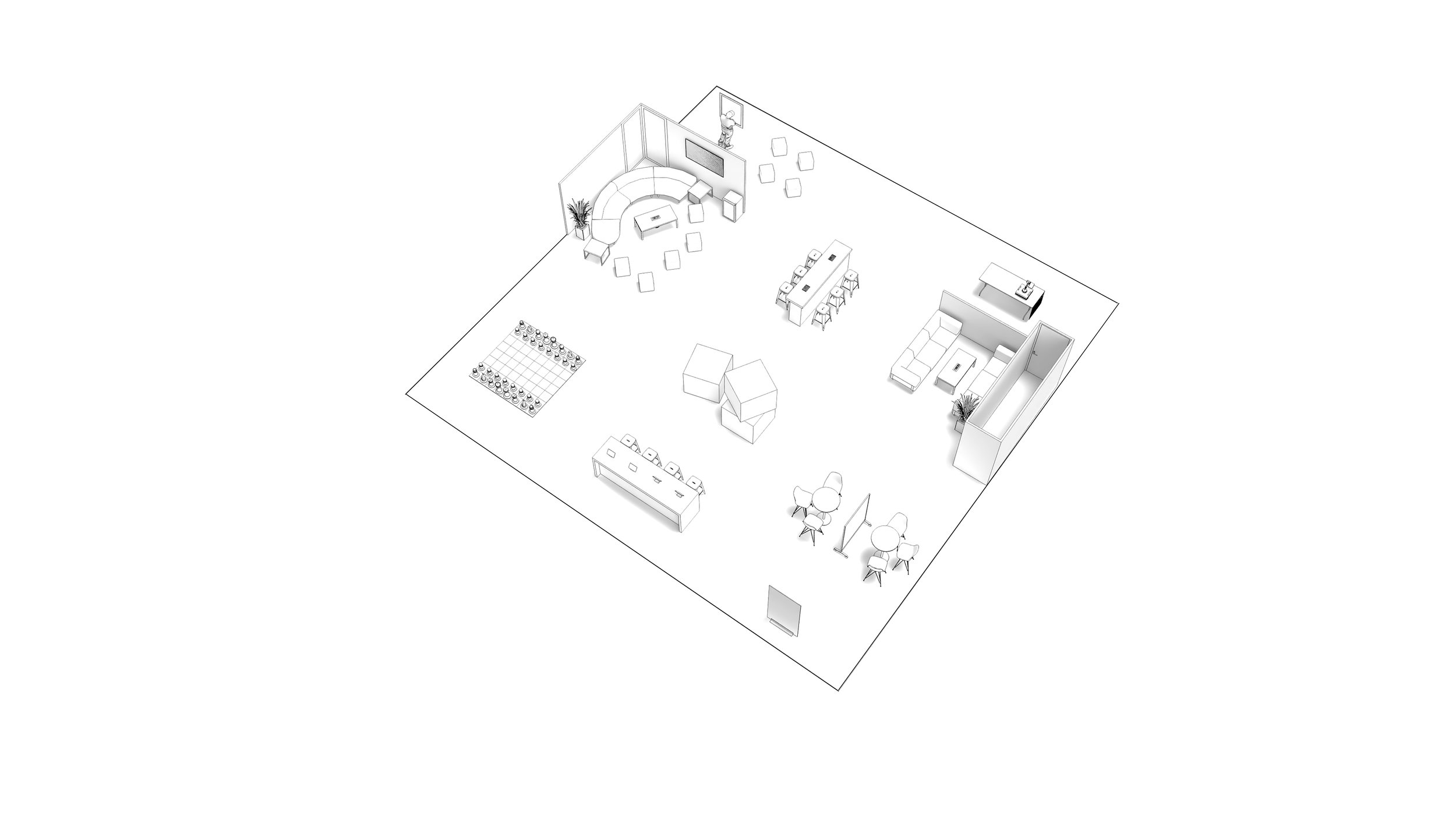 Introducing graphics and brand expression while refining circulation and zoning clarity as program elements are layered into the space.