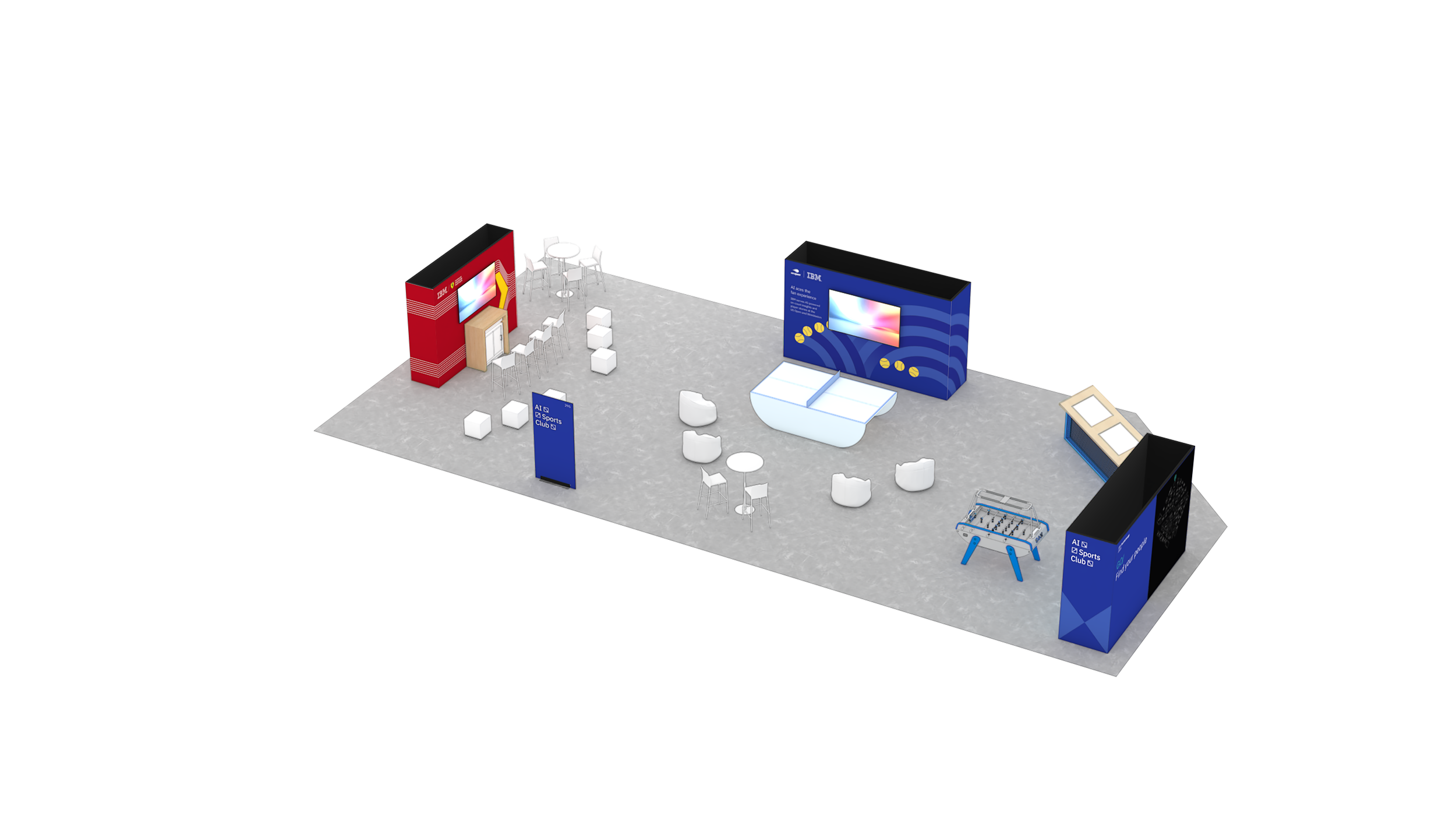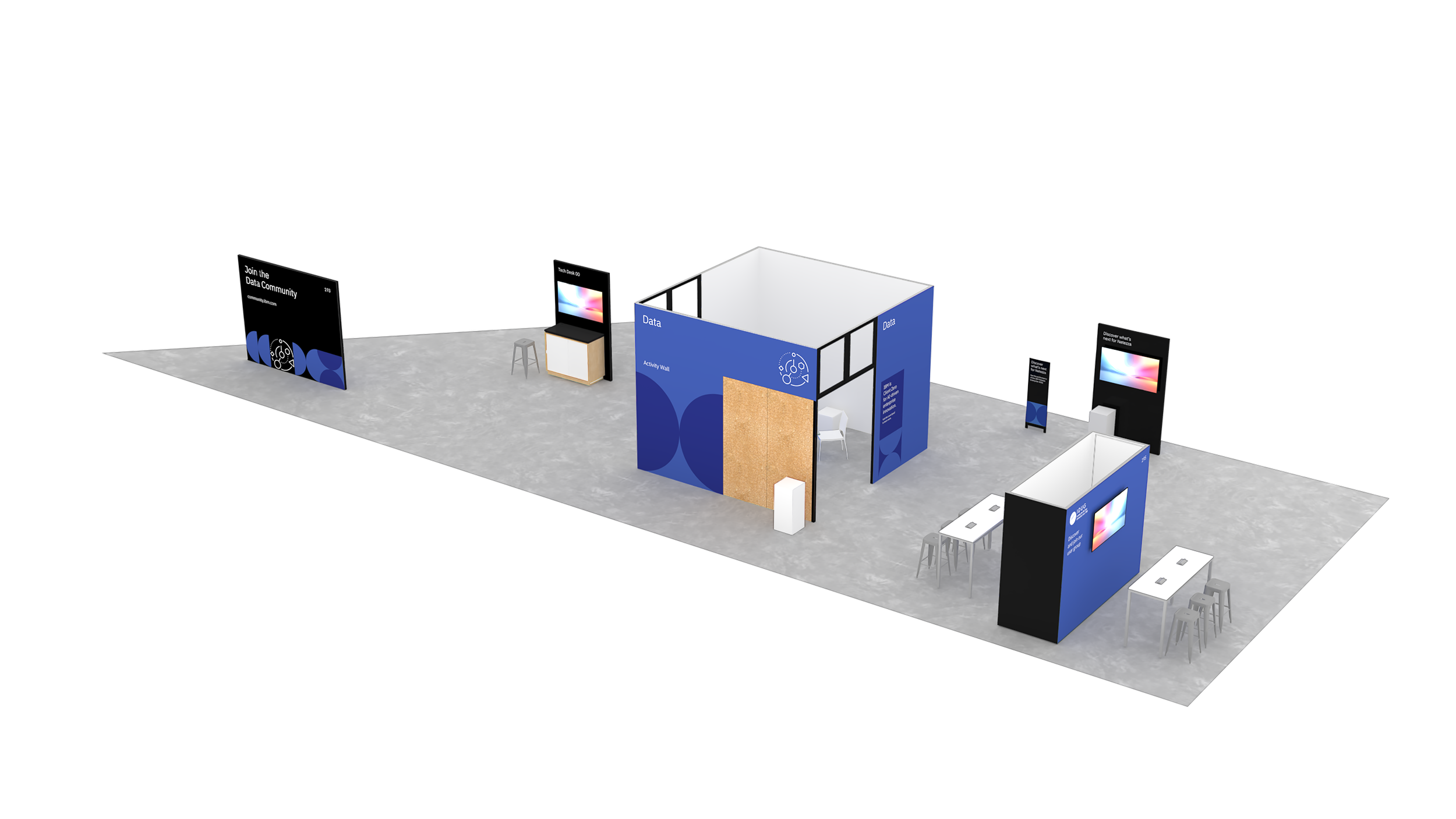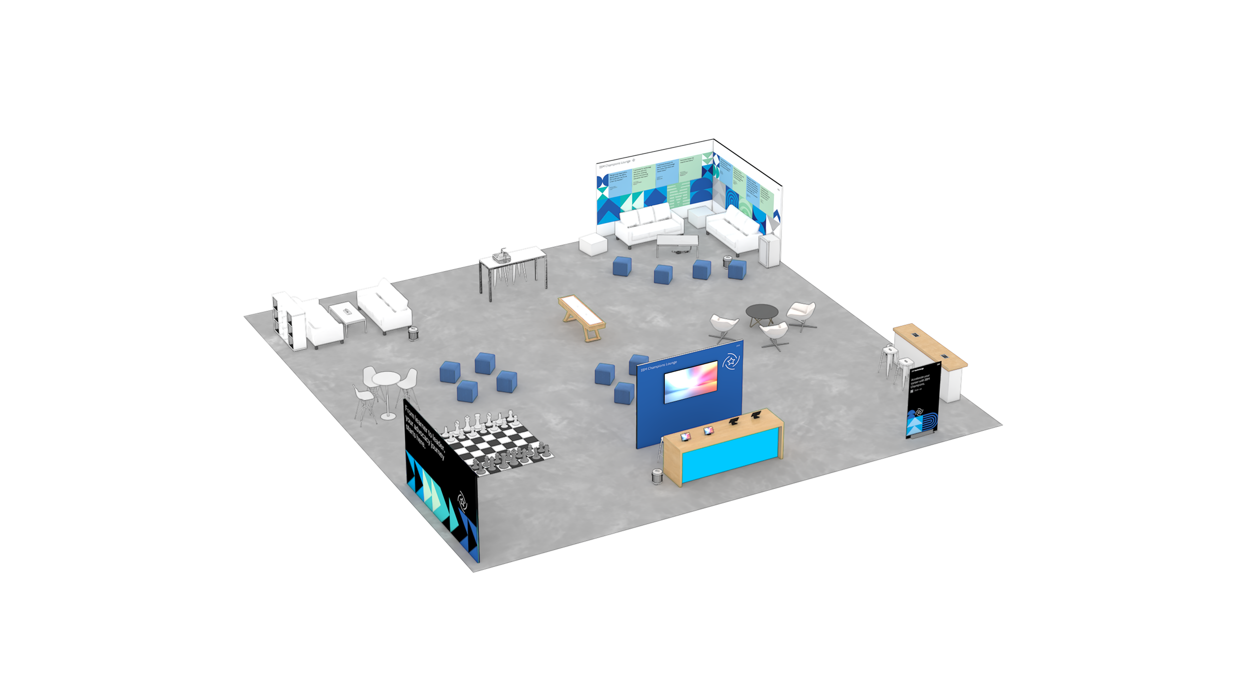 The diamond created a strong core for the main activation spaces while opening sightlines in all directions. From nearly anywhere, attendees could see surrounding activity, understand where to go next, and stay oriented without relying heavily on signage.