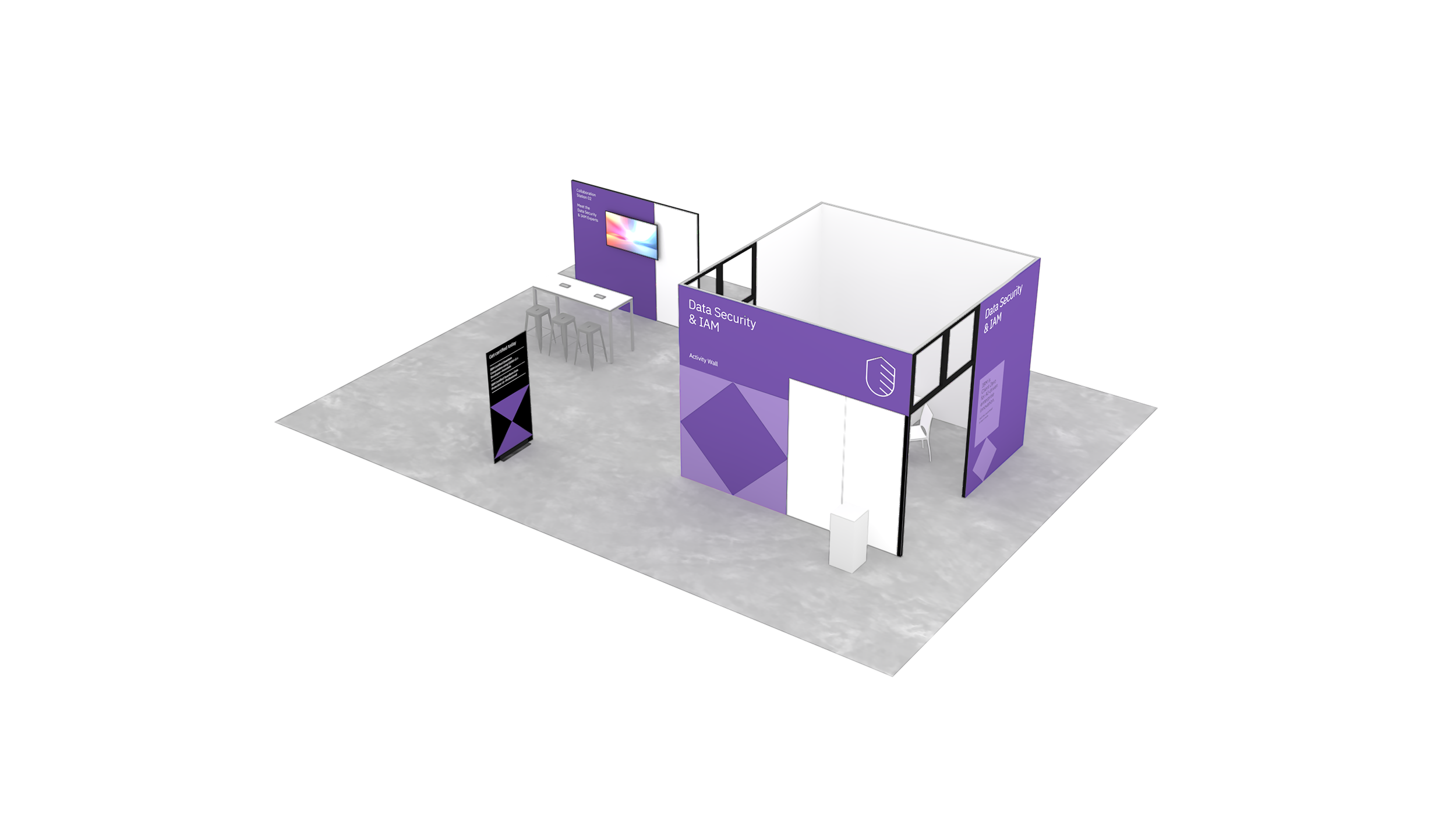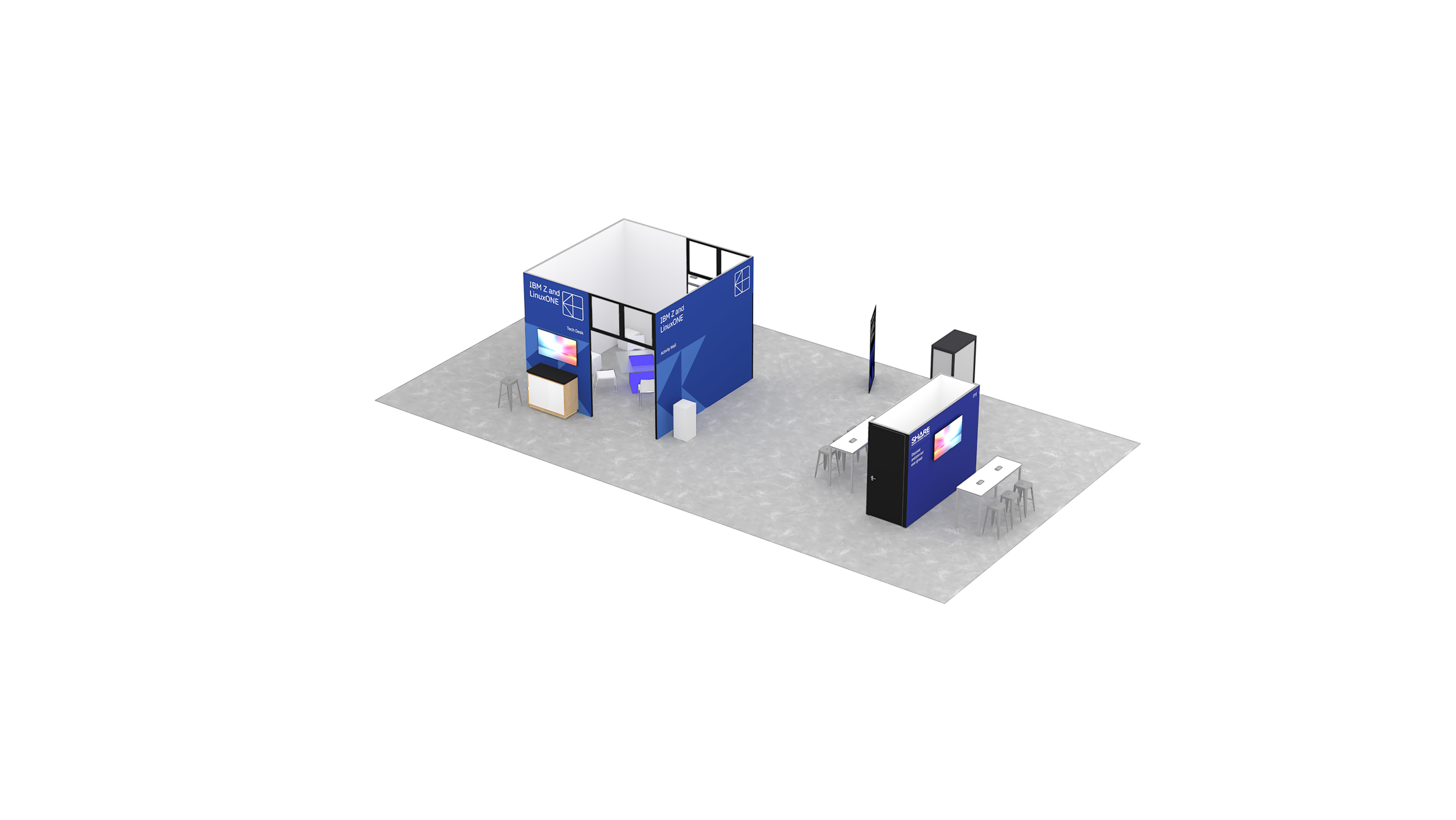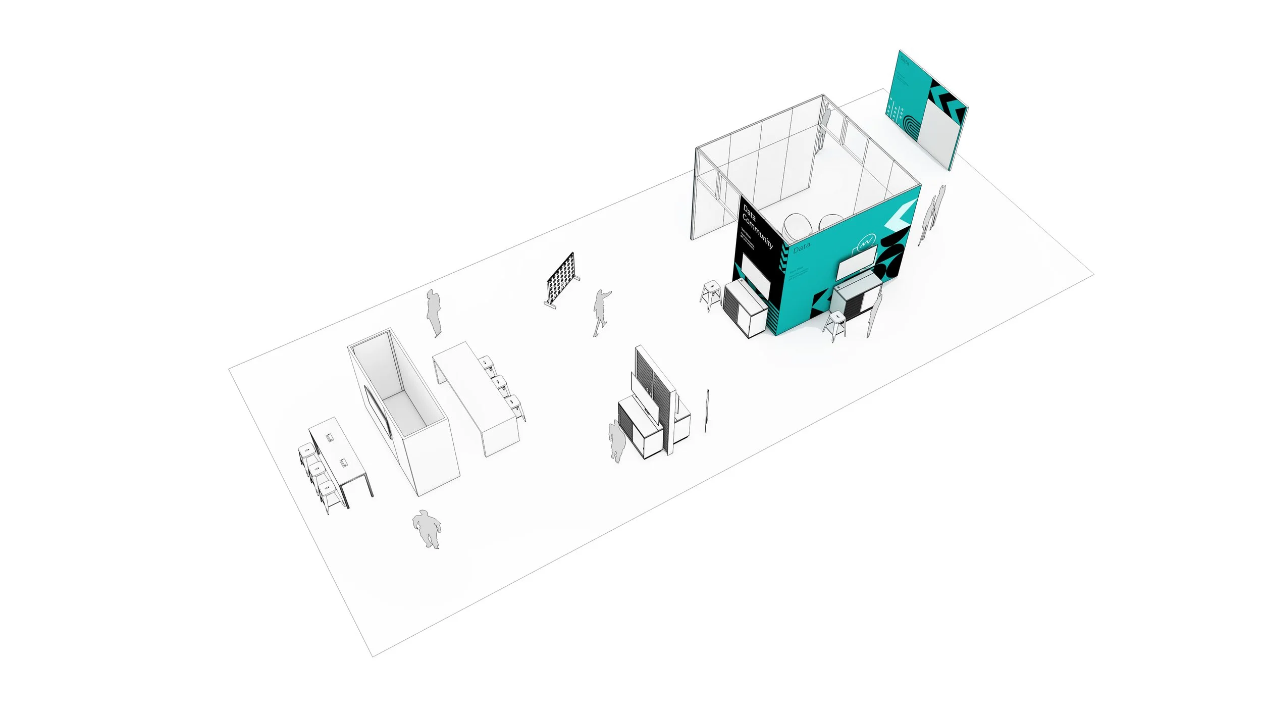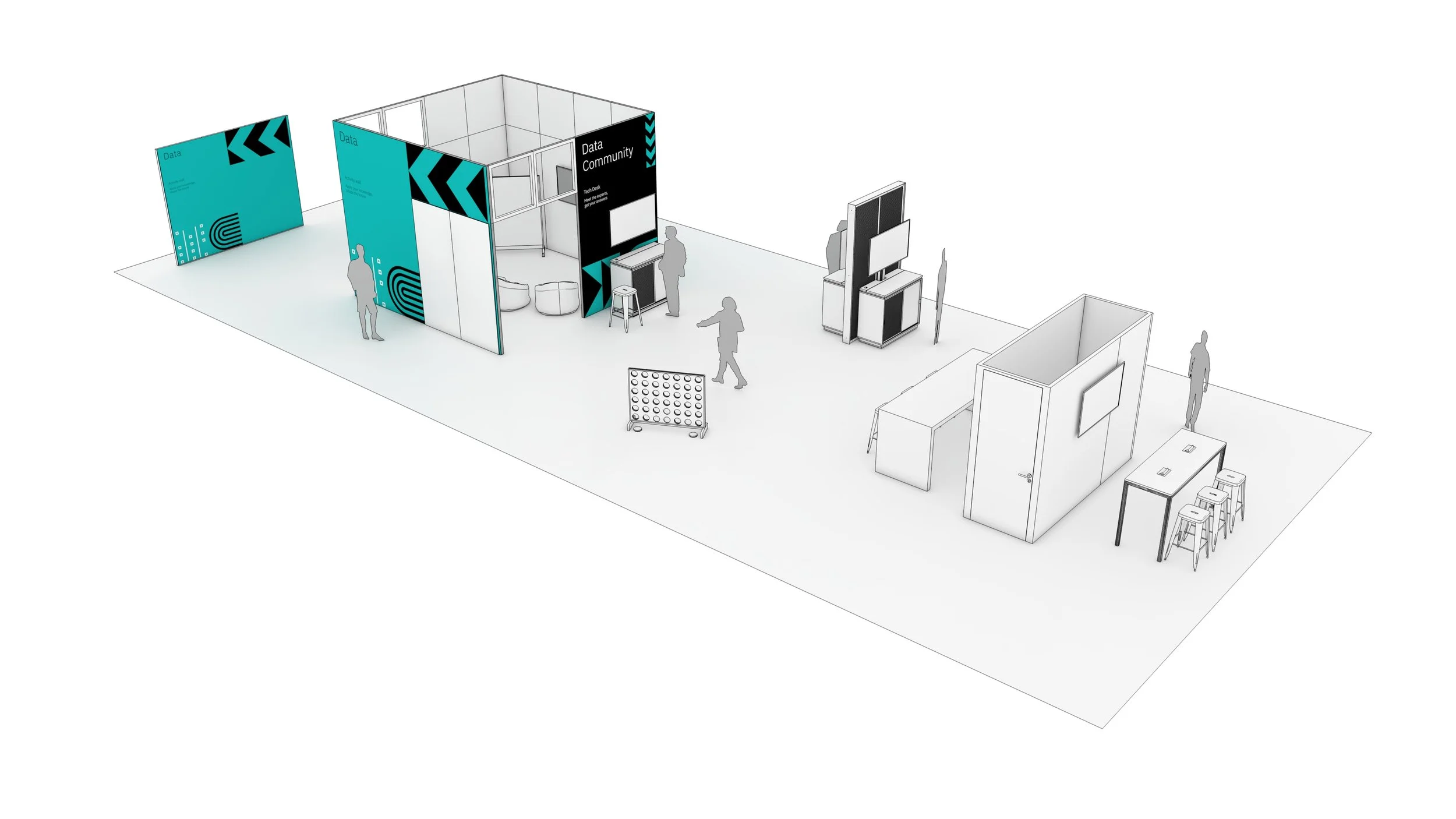 The diamond created a strong core for the main activation spaces while opening sightlines in all directions. From nearly anywhere, attendees could see surrounding activity, understand where to go next, and stay oriented without relying heavily on signage.