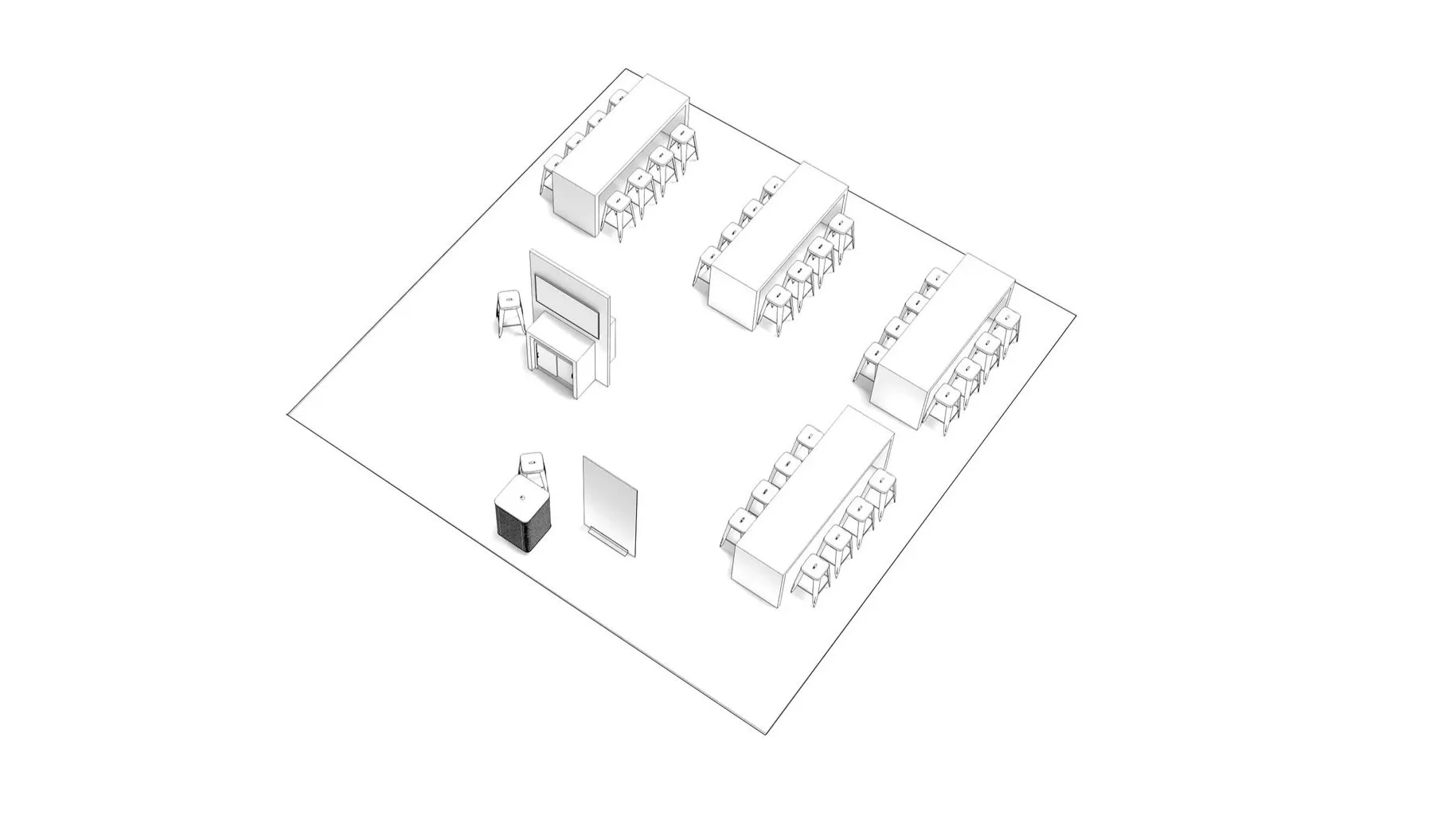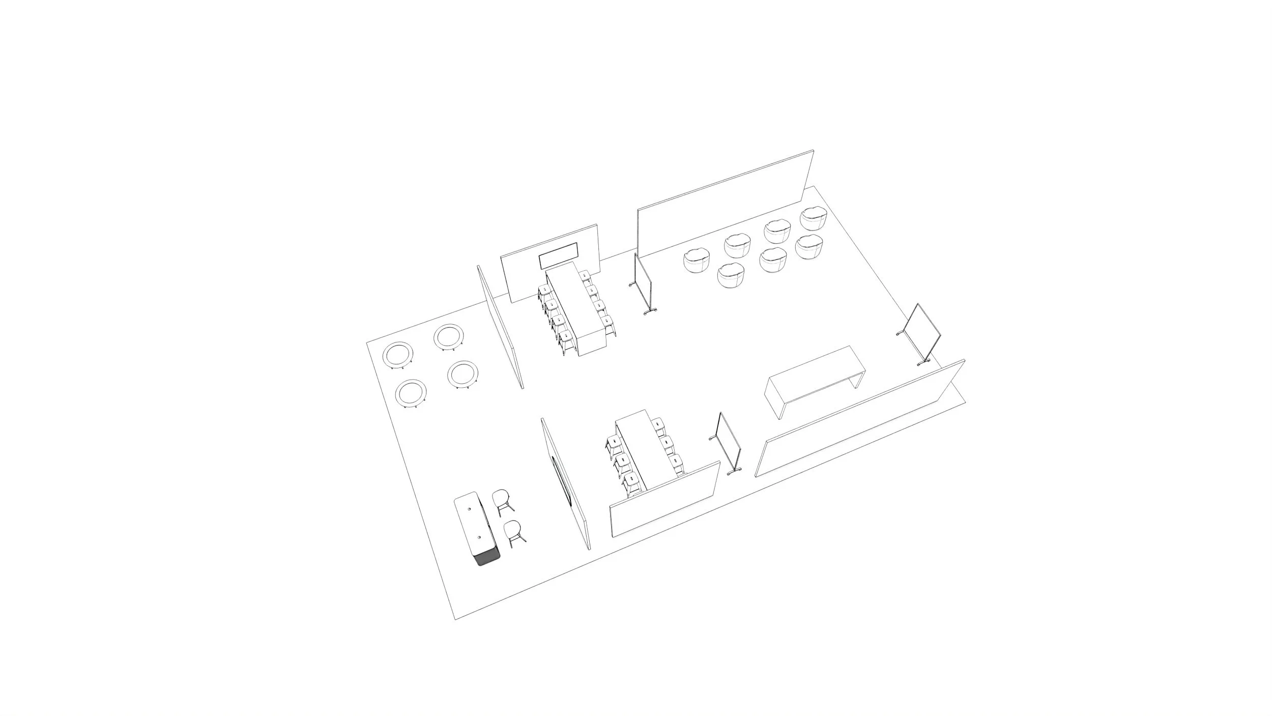 While the main hall emphasized openness and connection, Hall B was dedicated to computer labs and configuration spaces. These programs required deeper concentration, so they were positioned to feel more private — while still remaining open and spacious.